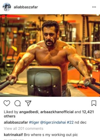 Katrina Kaif has been really really active on her Instagram page since the time she joined social networking. So much so that she posts snaps and also never forgets to put in a quirky comment on her pal’s post time and again. Just yesterday Ali Abbas Zafar, director of ‘Tiger Zinda Hai’ posted a drool-worthy picture of Salman Khan. It wasn’t just a picture of Salman, it was a bare bodied Khan who flexed his muscles for the camera and fans couldn’t help but go weak on their knees.