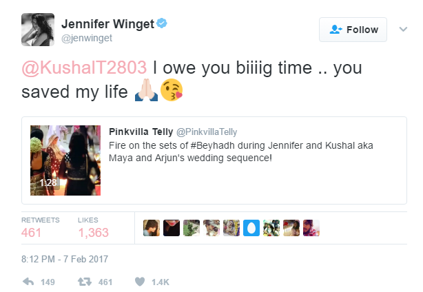 Jennifer later took to Twitter and thanked Kushal. “@KushalT2803 I owe you biiiig time .. you saved my life,” she wrote.