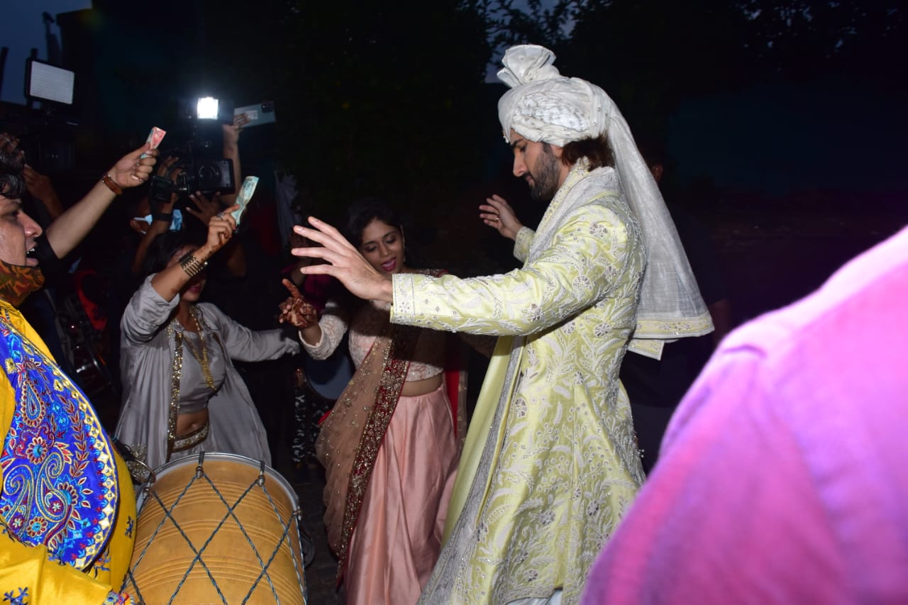 A paparazzo shared pictures and videos of Aditya from the wedding venue. The actor arrived in a red car and was clicked with the baarat. Aditya looked dashing as he arrived with the baarat in full Bollywood style. The actor was also seen enjoying to the beats of the Dhol. He was enjoying the atmosphere around him.