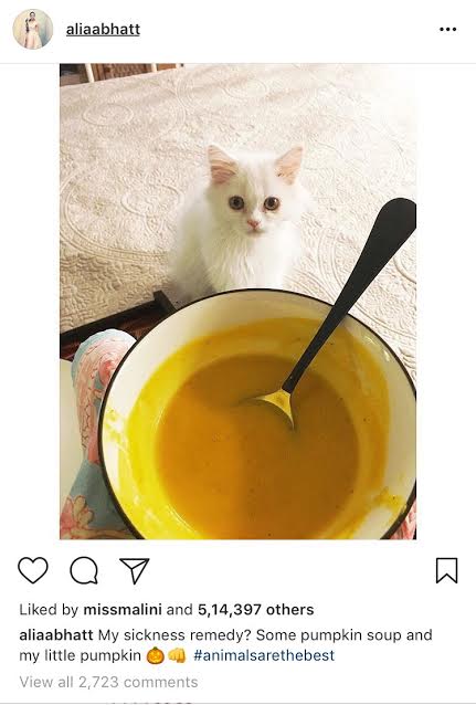 With those long whiskers and snow-like fur, Alia’s cat, Edward is seriously super endearing . If you follow Alia on Instagram, you’ve already seen her Edward album featuring the duo’s most special, quiet times together. All those sleepy selfies (Snapchat filters included!), a photograph of Edward hiding in the bookshelf captioned “My son”, and a particularly sweet snapshot of little Edward keeping a sick Bhatt company while she ate pumpkin soup. Oh my gosh, this is so sweet!