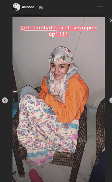 On Monday, on the 72nd day of the shoot, ‘Raazi’ actress took to Instagram and shared an adorable photo of hers. In the photo, Alia is seen wrapped up in a warm shawl. Check out the photos here: