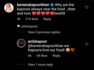 She asked, “Why are the kapoors always near the food… then & now bestttt”. To this, the Jug Jugg Jeeyo actor replied, “@kareenakapoorkhan we Kapoors love our food”.