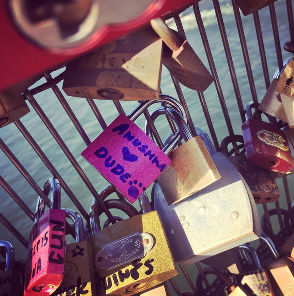 Anushka Sharma who is currently busy in shooting for her next film ‘Ae Dil Hai Mushkil’ visited the Love Lock Bridge in Paris and she wrote a name of her dog ‘Dude’.