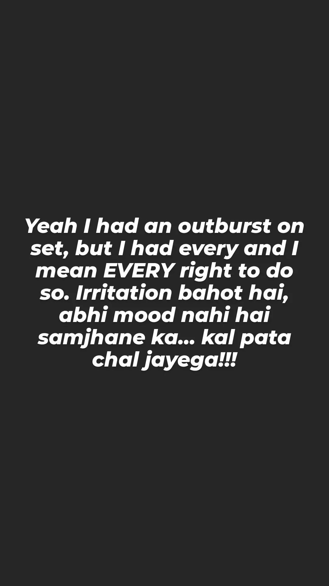 Taking to his Instagram stories, Arjun wrote, “Yeah I had an outburst on set, but I had every and I mean EVERY right to do so. Irritation bahot hai, abhi mood nahi hai samjhane ka… kal pata chal jayega!!! (sic)”