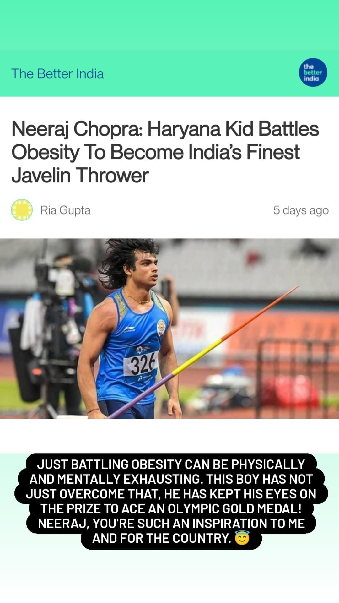 For the unversed, Neeraj, who created history for India at the Tokyo Olympics by winning a gold medal, had an obese childhood. Reportedly, at the age of 13, he weighed more than 80 kgs. Like Neeraj, Arjun also struggled with obesity since childhood.
