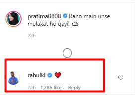Commenting on Pratima’s post, Rahul left a heart emoji in the comment section.