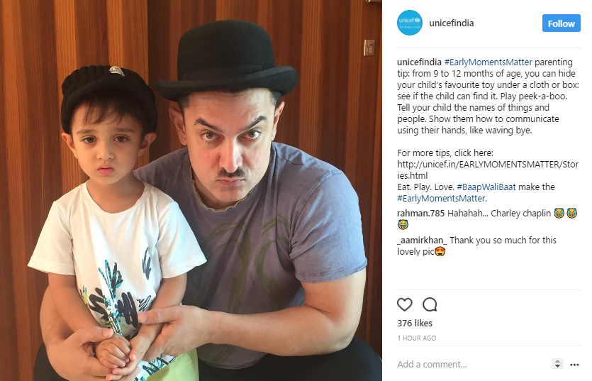 Aamir Khan is a hands on dad and time and again we come across pictures that prove the same. His little son Azad is his lifeline. Aamir is the brand ambassador of UNICEF, and the organisation, on the upcoming occasion of Father’s Day, has posted two pictures and a video of the doting father-son duo. It is enough to melt your heart into a puddle.
