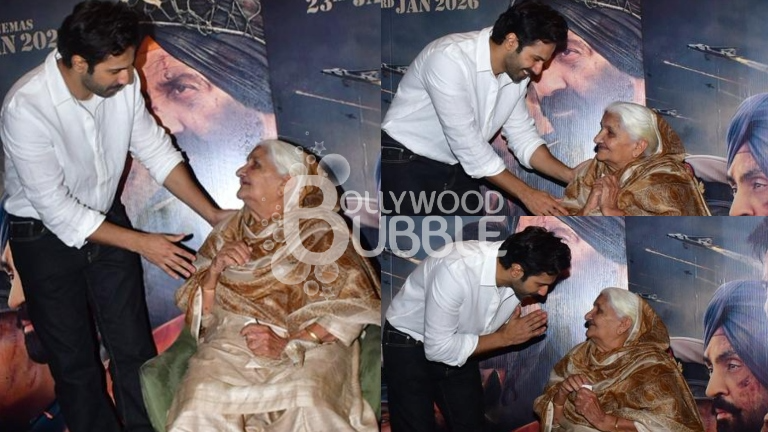 In the clip posted by a paparazzi account on Instagram, Colonel Hoshiar Singh Dahiya’s wife is seen touching Varun’s head with a smile, saying, “Tumne bahot badhiya kiya hai. Bahot badhiya, shabbash! Film bahot achi chalegi” (“You’ve done a great job. Very good, bravo! The film will do really well”). Varun politely bent down and thanked her for the warm gesture.