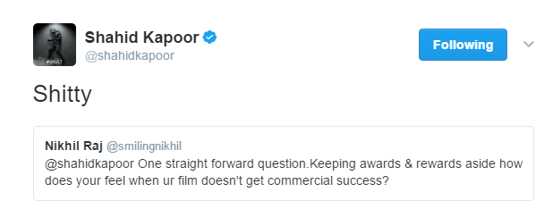 But, when one fan asked him as to how does it feel when any of his movie does not get commercial success, he had a straighforward reply, “sh**ty”.