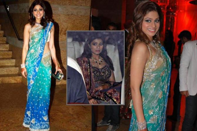 Shamita made her presence felt in a blingy way at sister Shilpa and Raj’s reception. Wearing a sea green Manish Malhotra saree, she donned some heavy diamond jewellery with a touch of ruby in the necklace. Must say, the Shettys are pros when it comes to the glam avatar.