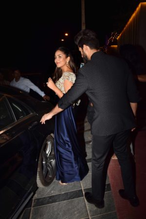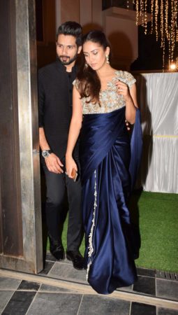 Shahid Kapoor and Mira Rajput have been painting the Instagram red with all their lovey-dovey pictures they keep posting of each other. Last night too was no different. The duo was spotted in Juhu at a wedding reception complimenting each other. Shahid looked dapper in an all-black attire while we loved what Mira did with her Deep Blue satin saree.