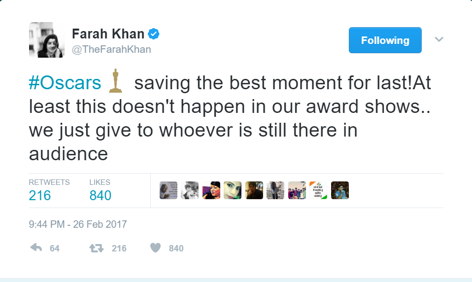 With Oscars 2017 trending all over the social media, everyone is quite excited to be a part of it. Many Bollywood celebrities too are wooting for the Oscars as we have none other than Priyanka Chopra representing India at this honourable gala. But on the same note, choreographer turned director, Farah Khan gave out a shocking truth about the award ceremonies that take place in Bollywood.