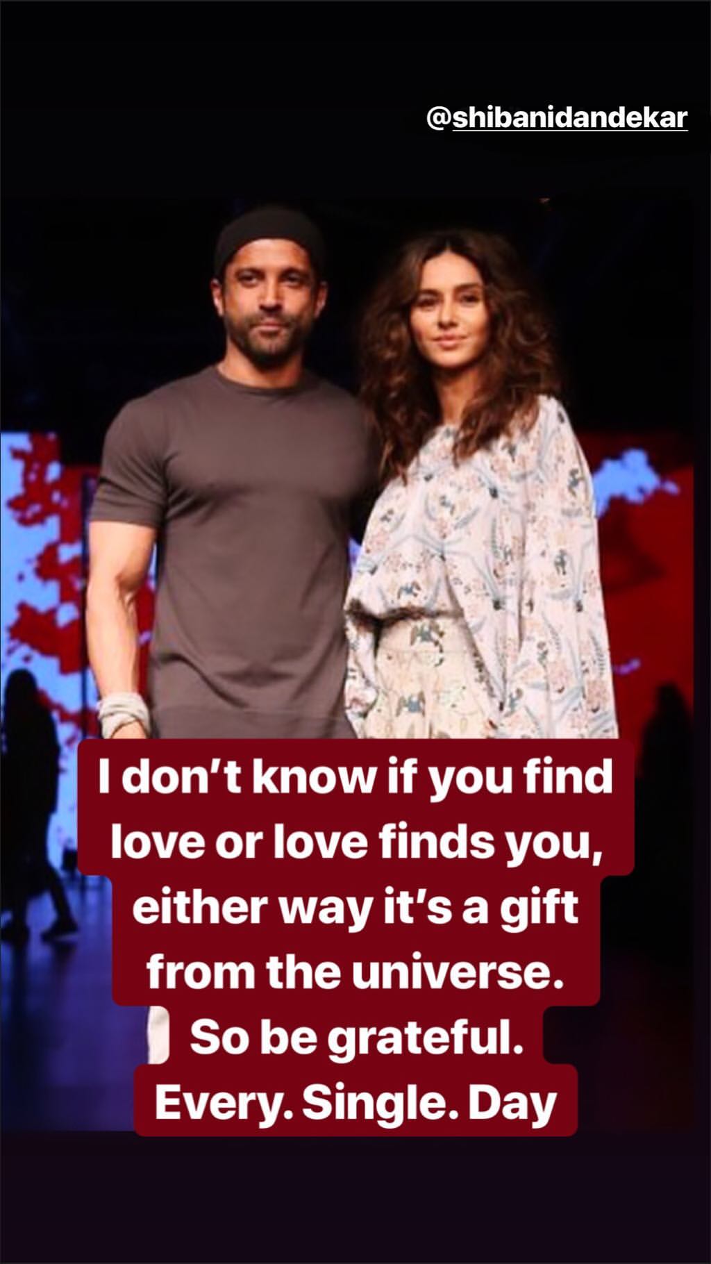 Farhan Akhtar recently took to his Instastories and shared a romantic post for Shibani that will make even a cynic believe in love.