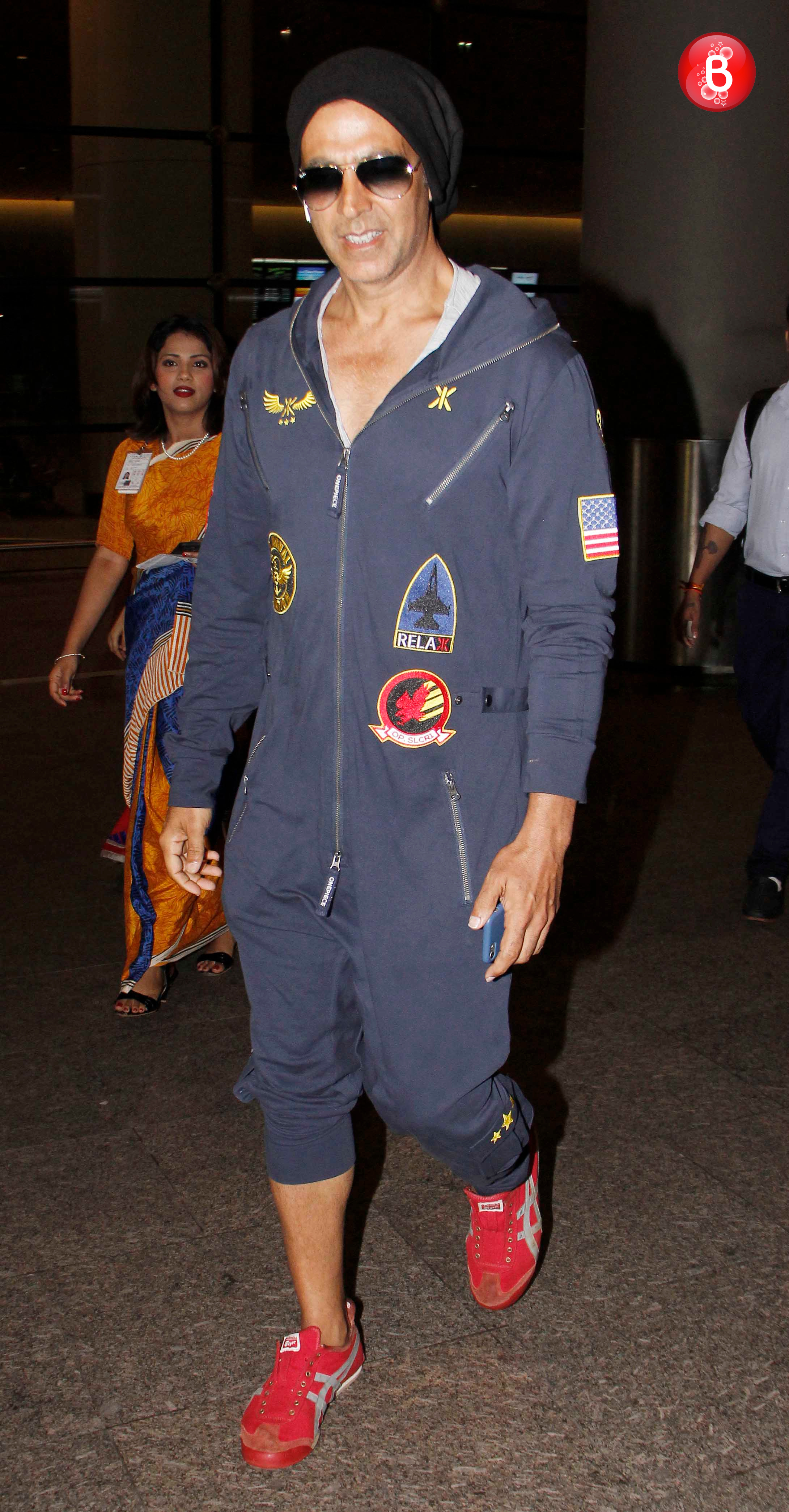 Who said only Ranveer Singh can look all quirky and sexy, because Akshay Kumar is also one such actor who looks HOT in whatever he wears. Spotted at the airport in his signature style with one leg of his pants rolled up, Akki wore a blue toned men jumpsuit and made us fall in love with this style. Further, adding that black beanie cap and red shoes was a brilliant idea, we must say. Overall, quite relaxed yet neatly dressed! Style score-3.5/5!
