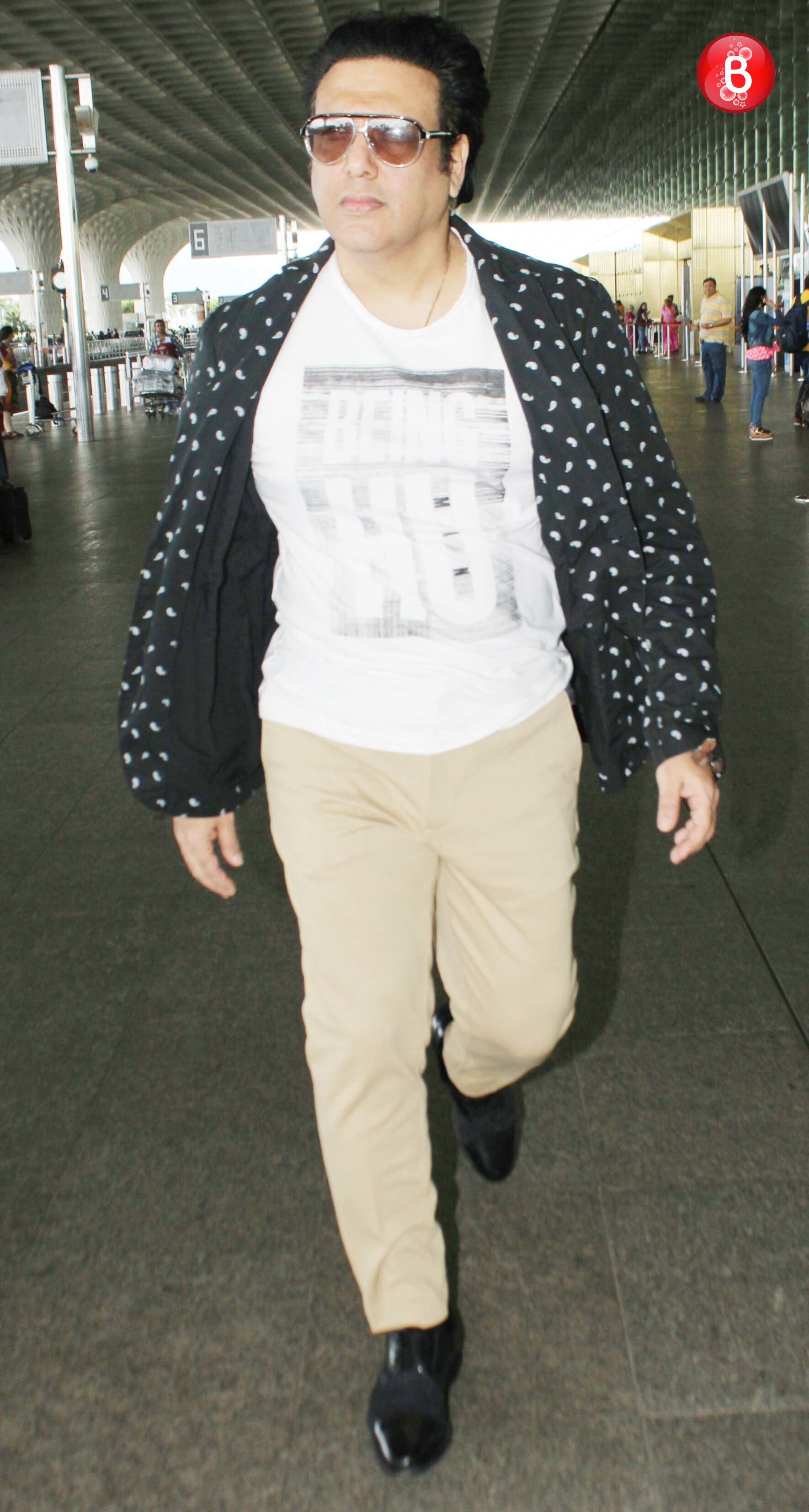 Known for his funny antics, acting and dancing skills, Govinda was also clicked this week at the airport. Wearing a cream pant which he paired up with a white tee and a printed jacket, Govinda looked so-so. While we have no complaints with his tee and pants, layering it up with that tacky jacket was a bad idea. Style score-2.5/5!