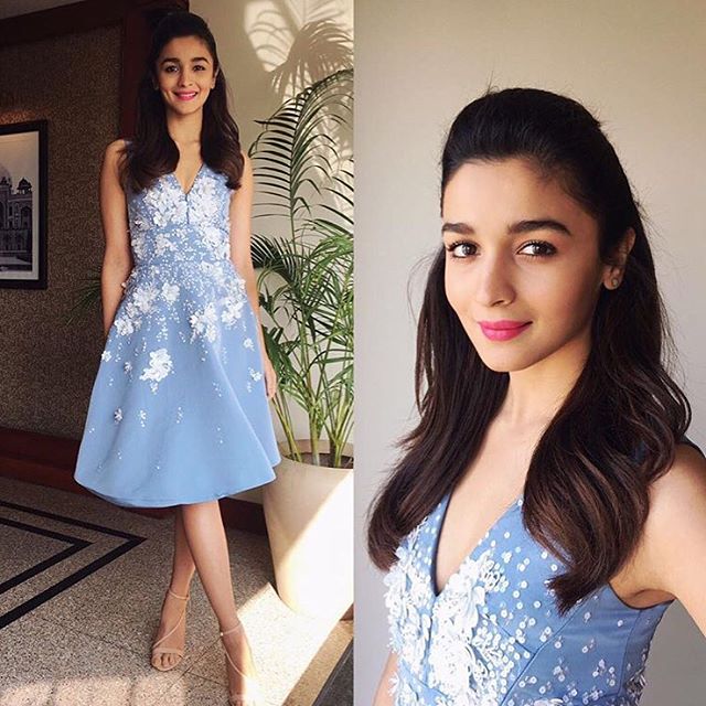 Alia looks like an adorable princess in a fit and flare dress with 3D floral embroidery from designer Prabal Gurung’s Spring 2017 collection. But no styling is ever complete without a good hairstyle and make-up, and we are so glad that she went for minimal make-up and pretty soft curls.