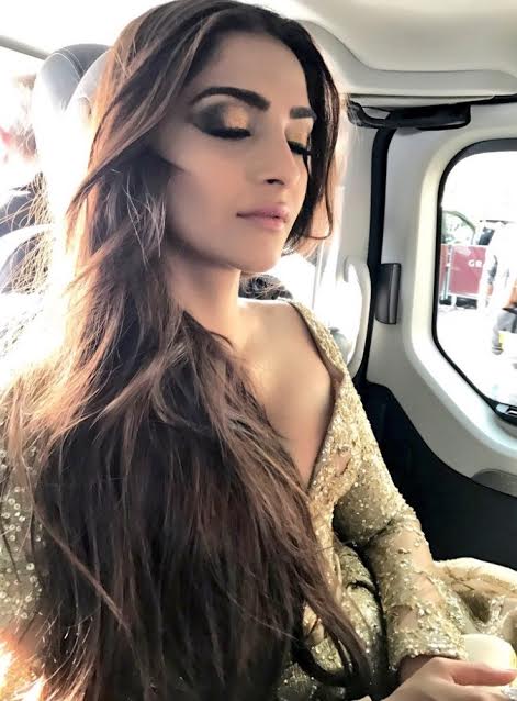 Sister Rhea Kapoor shared a picture of Sonam on Instagram, where she wrote, “Sneak peak @sonamkapoor giving golden goddess vibes in another @eliesaabworld custom haute couture knockout number, dripping in @chopard and gold glam courtesy @lorealmakeup @namratasoni and genius @stephanelancien,” [sic]