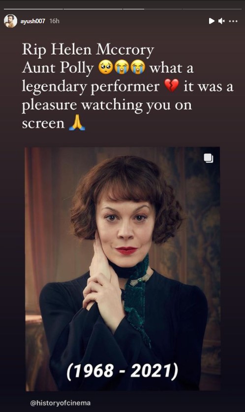 “RIP Helen McCrory. Aunt Polly. What a legendary performer. It was a pleasure watching you on screen,” wrote Ayush Mehra.