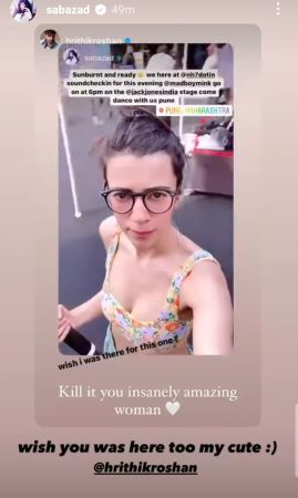 Today, Hrithik shared Saba’s post as his Insta story and wrote, “wish i was there for this one” and added, “Killing it you insanely amazing woman”.