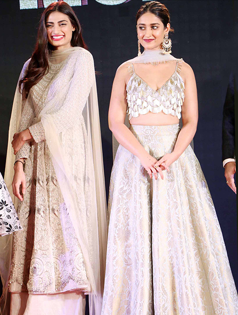 Recently, the two leading ladies along with the entire cast of ‘Mubarakan’ stepped out in gorgeous traditional avatars for a grand sangeet ceremony hosted for the promotions. They seemed to be in full spirits as they spoke to the media and shook a leg too for the audience. We loved how they decided to go twinning in embellished ivory ensembles. While Athiya has sported traditional looks for promoting the flick earlier, it was refreshing to see Ileana in this avatar as she’s mostly been seen in flowy dresses and skirts lately. So, here’s all the style dope you needed to get your fashion soul up and kicking. (Also read:Â Karisma Kapoor is all about easy-breezy yet chic fashion in Daniele Carlotta)