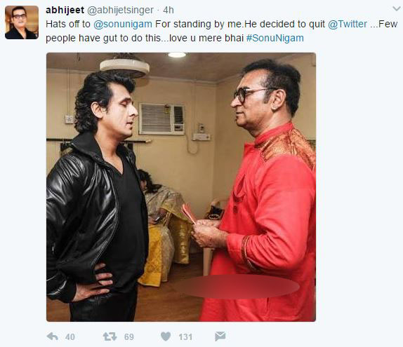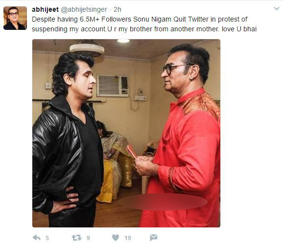 The second tweet about Sonu read, “Despite having 6.5M+ Followers Sonu Nigam Quit Twitter in protest of suspending my account.U r my brother from another mother. love U bhai.”