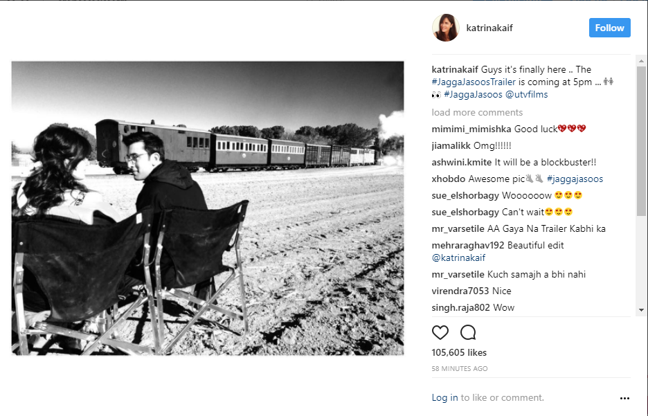 Ranbir Kapoor and Katrina Kaif’s upcoming film ‘Jagga Jasoos’ is special. One, because it is releasing after bracing numerous delays and two, because Ranbir and Katrina, the much-talked about ‘ex-lovers’, would be seen in this film. Excitement is high for ‘Jagga Jasoos’ and the stars doing their best to create a buzz around it. The leading lady has recently shared a still from the film which is quite endearing. Ranbir has all his attention towards Katrina. (Also Read: OMG Fact! Ranbir Kapoor has lost 11 kg for ‘Jagga Jasoos’)