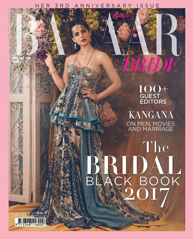 This lady has been stealing the show and how! Anyone and everyone is going gaga over her unsullied, rustic look in ‘Rangoon’. The awesome Kangana Ranaut this time appeared on the 3rd anniversary special issue of Harper’s Bazaar Bride. We simply can not get over how she is glowing in her majestic charm all over!