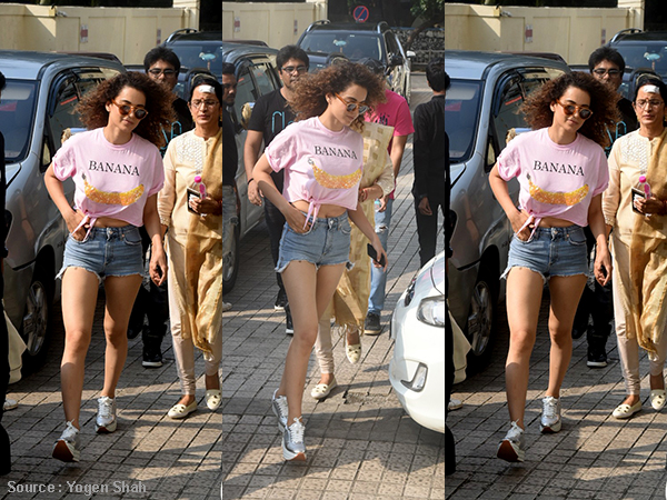 And so, recently clicked by the shutterbugs in a super casual avatar, Kangana’s outfit was not to be missed. In vogue and donning a denim shorts with a light-pink coloured knotted crop top, the ‘Queen’ actress was a mesmerising sight which you want to never stop staring at. Attention to details, Kangana opted for a no-makeup look, giving a girl next door vibe, and we are loving that. But apart from the makeup and the outfit, the big thing which we gushing over is Kangana’s banana print tee. It’s so cool and funky that every bold babe would love to make that casual piece part of her wardrobe. (Also Read: 5 Bollywood approved ways for GUYS to impress a girl!)