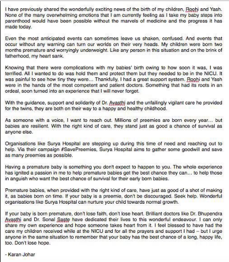 He recently sent out a letter to all the doctors who supported him and took good care of his kids. Karan posted this letter on his Twitter handle and said that he was quite overwhelmed with all the support that he has received from his fans and doctors.