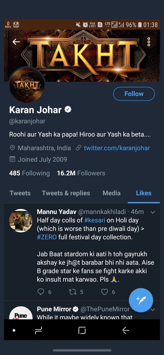 For those who think that @karanjohar would have mistakenly liked that tweet, let me tell you one thing that I am very careful and aware of what I like/RT/tweet without being a social media personality but he is. And so he must be aware of what he’s doing here.#ShameOnKaranJohar