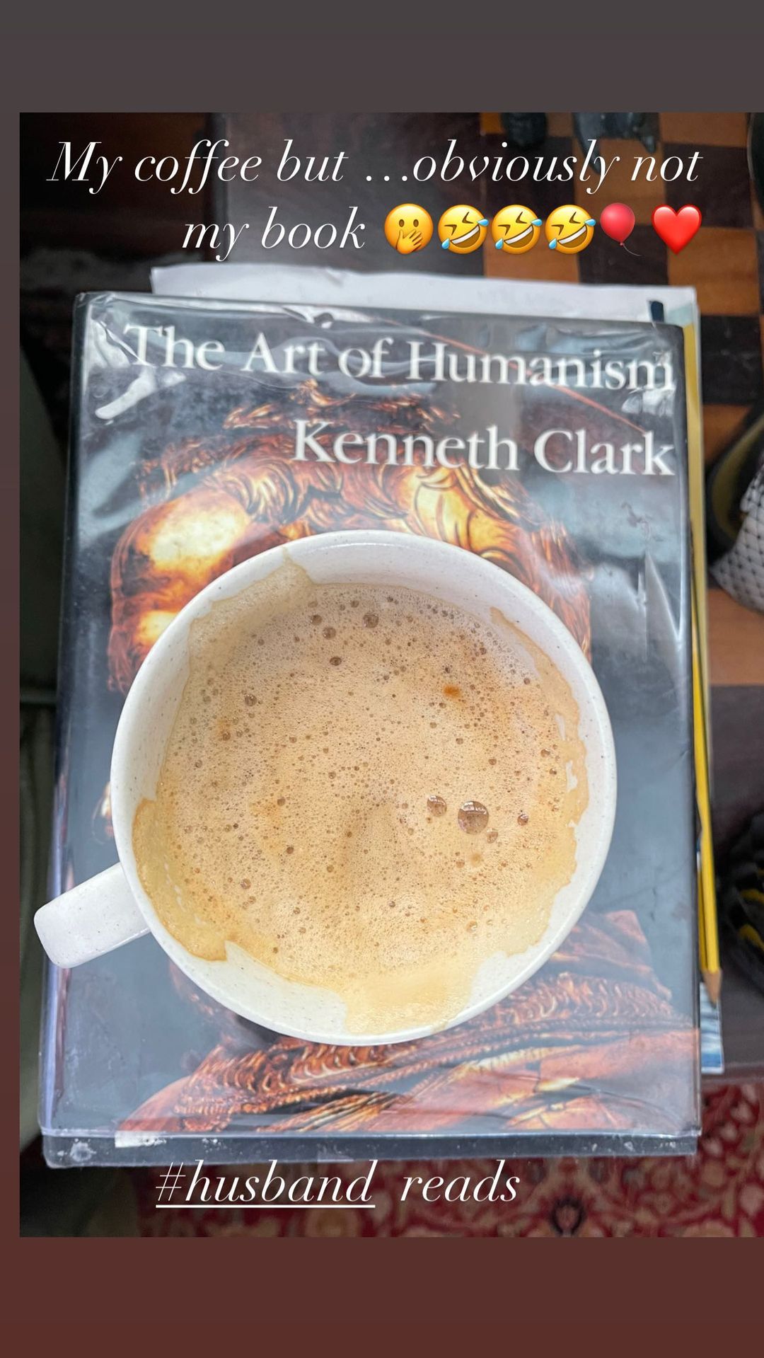 The Laal Singh Chaddha actress shared a picture of a coffee mug sitting on a book. The book in the picture is titled ‘The Art of Humanism’ written by Kenneth Clark. Kareena Kapoor shared the picture on her Instagram stories and mentioned that Saif Ali Khan is reading the book. The actress shared the photo and captioned it, “My coffee but.. obviously not my book,” followed by several laughing emojis and a red heart emoji. She even added, “#husband reads.”