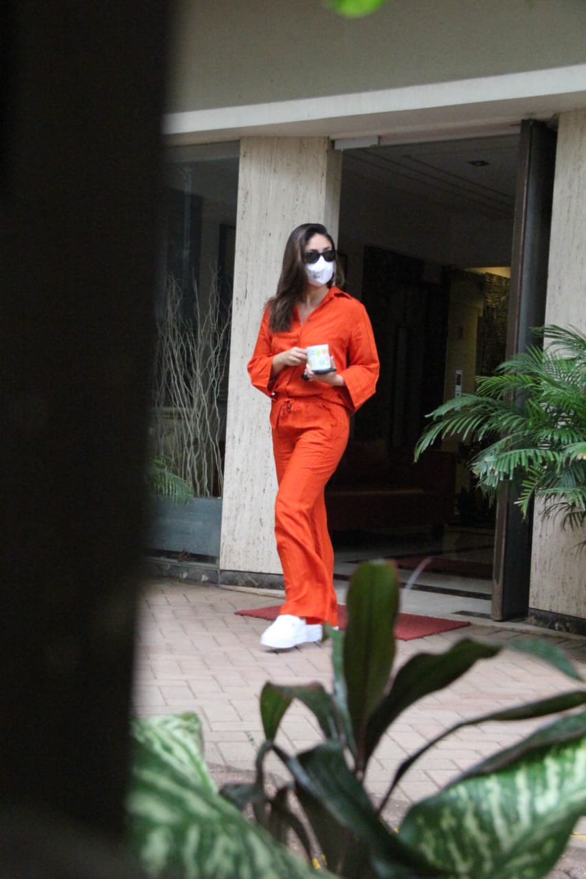 Meanwhile, in the pictures from earlier this morning, Kareena looked hot in a red outfit. She wore a jumpsuit and had paired it with white shoes. The actress had her coffee mug in her hand with her and was clicked with her tresses left open. She looked amazing during her appearance in the city.