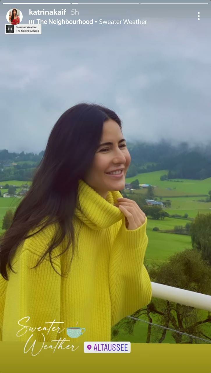 Sharing the photos, Katrina Kaif added the tune ‘Sweater weather’ to the post. She even added a ‘Sweater weather’ gif with a brewing tea cup. The actress mentioned that she is in Altaussee with a location tag.