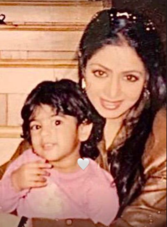Khushi took to her Instagram story and shared a childhood picture of herself with her late mother. She also added a white heart emoticon.