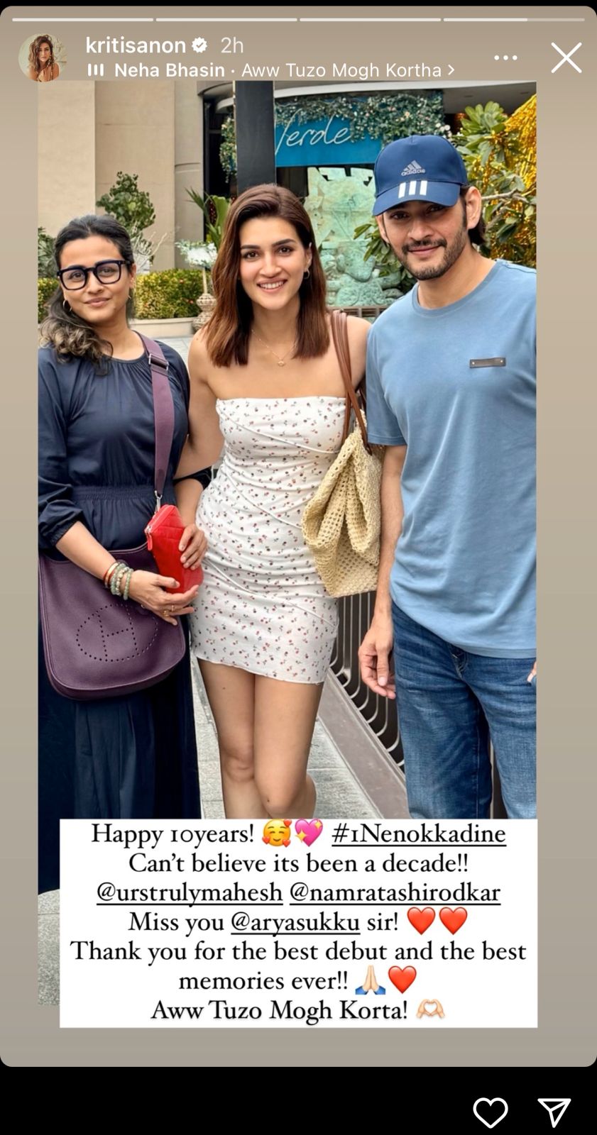 In the year 2014, Kriti Sanon made her debut not only in Hindi films but also down South. On January 10, the actress completed a decade in the South Indian film industry. Her debut film down South was 1: Nenokkadine, opposite Mahesh Babu. And to celebrate its 10 years, Kriti Sanon had a reunion with her debut co-star Mahesh Babu.