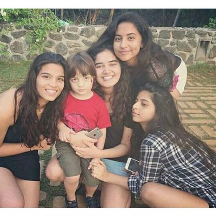For like ages now, Shah Rukh Khan is spreading his charm all over the globe. Females do go weak in the knees when we take his name, while every girl hunts for a romantic SRK in her partner. Well, some charm of his has sure been passed on to his little one, AbRam Khan. The boy, who is just a toddler yet, already has a female fan following and is quite famous among the female friends of his elder sister Suhana. Don’t believe us? Check out this picture of AbRam posing with sister’s girl gang, like a stud.