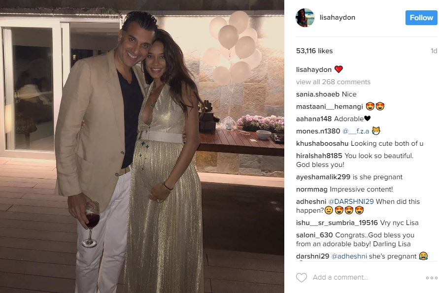 The actress recently posted a picture from a party in which she is posing with her husband and the baby bump. Lisa is looking stunning in her silver glittery gown and has carried the baby bump very well. (Also Read: CONFIRMED: Lisa Haydon announces her pregnancy with THIS beautiful photo)