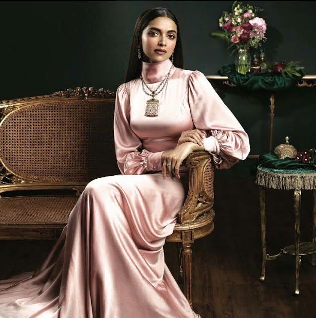 Here, wearing a blush satin coloured high-neck dress with her hair styled in a sleek way, Deepika surely deserves to be titled as the epitome of beauty.