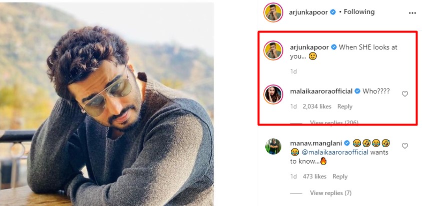 Over time, this couple has upped their social media game. Recently, Arjun had posted his solo picture and captioned it as, “When SHE looks at you… ?” And Malaika wasted no time in asking him “Who?”