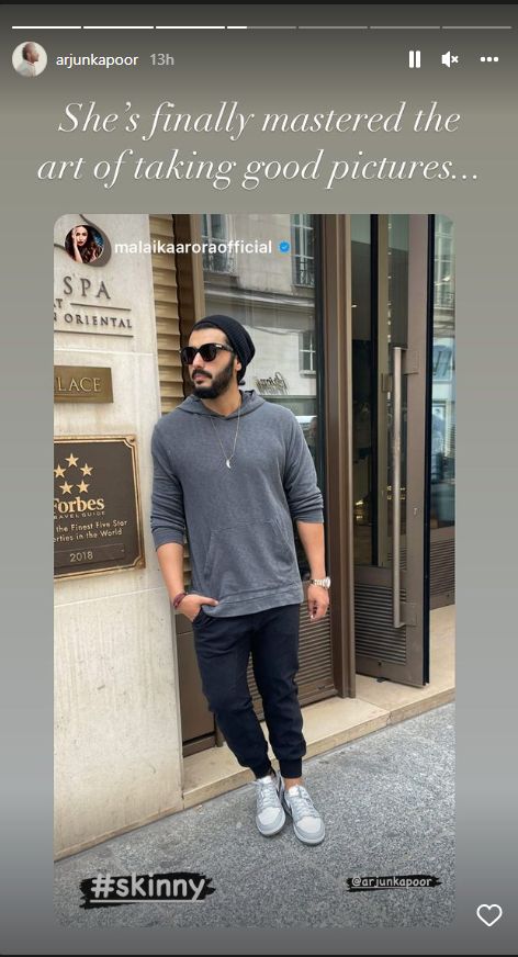 Check out Arjun Kapoor’s pic shared by Malaika Arora on her Instagram stories: