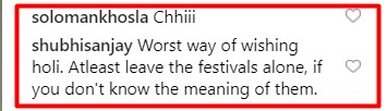 Going by the above comments looks like people are not pleased by the fun way of Malaika wishing everyone on the festivals of color.