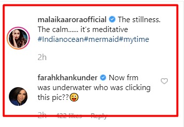 Now, the first person to comment on Mala’s post was none other than her filmmaker-choreographer friend Farah Khan. Like a true friend, Farah came in to pull Malaika’s leg as she questioned her, “Now from underwater who was clicking this pic?”. Obviously, she was hinting at Malaika’s boyfriend Arjun Kapoor.