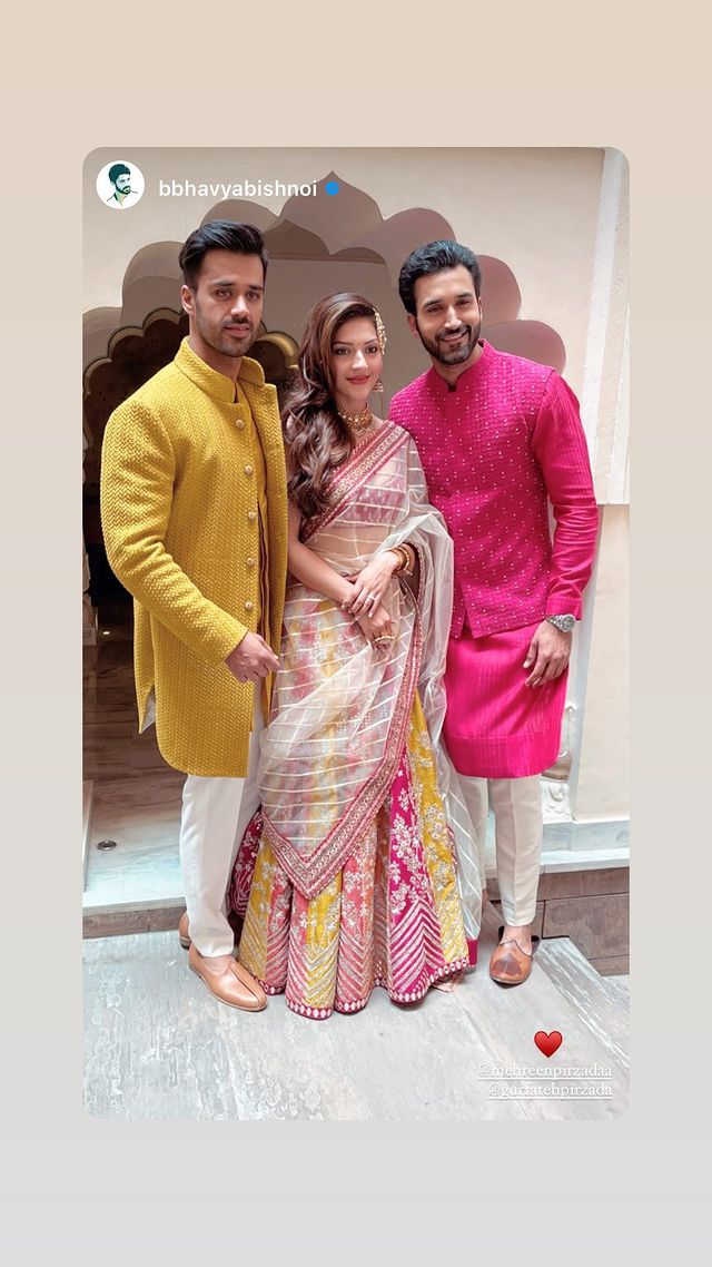 As the engagement got over yesterday, photos and videos from the ceremony have been circulating on social media. After their ring exchange ceremony, the couple had their first special dance in front of the guests. In the photos that Gurfateh has shared so far, Mehreen and Bhavya seem to have kept their attires, colour coordinated.