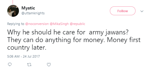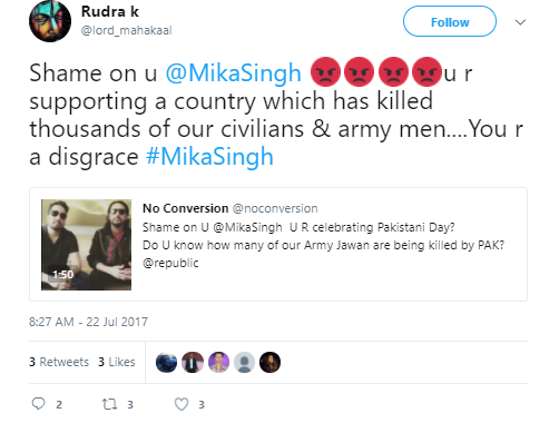 “Shame on you. You are celebrating Pakistani Day? Do you know how many of our army Jawan are being killed by Pakistan?,” [sic] one of his follower’s tweet read. One even went on to call him the worst human being of Bollywood, while some argued how right was it to show off his fondness for Pakistan when many of Indian soldiers are killed by their people everyday.