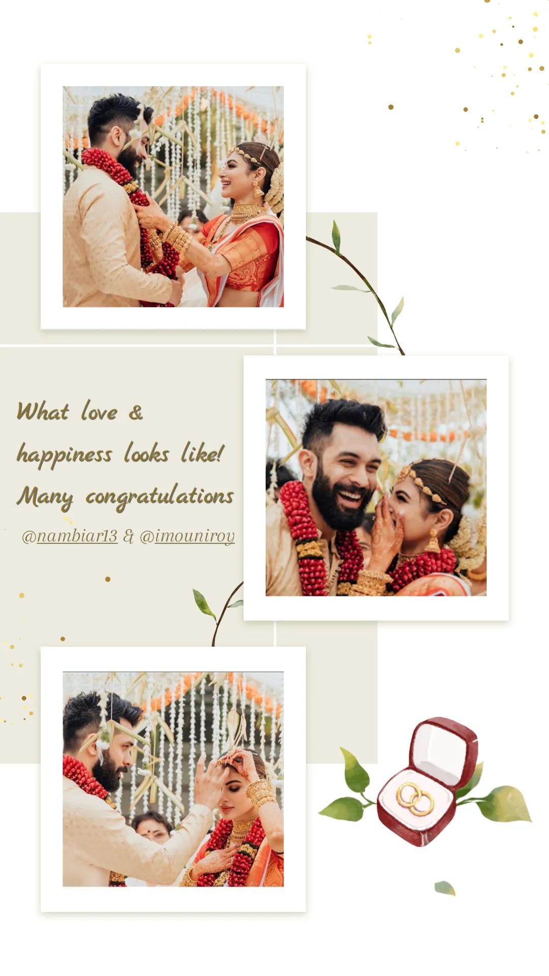 Vidya Malavade: “My darling girl … BLESSINGS for lifetimes of happiness love & togetherness ❤️ @imouniroy @nambiar13”