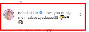 Commenting on Rohan’s post, Neha wrote, “I love you duniya mein sabse zyadaaaa!!!! ??♥️♥️??(sic).”