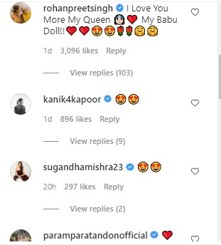 Commenting on Neha’s post, Rohanpreet wrote, “I Love You More My Queen ??❤️ My Babu Doll!!❤️❤️??????(sic).” Several celebs like Kanika Kapoor, Sugandha Mishra, Parampara Tandon left heart and heart-eyed emojis on Neha’s post.