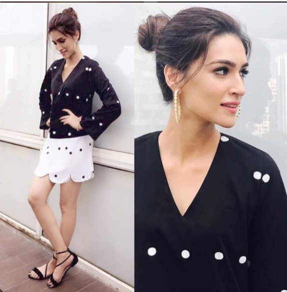 Kriti Sanon’s messy bun style can never go out of fashion. Why? It keeps hair off your neck and still keeps the look casual. This hairdo matches her personality perfectly and we love her dress too!