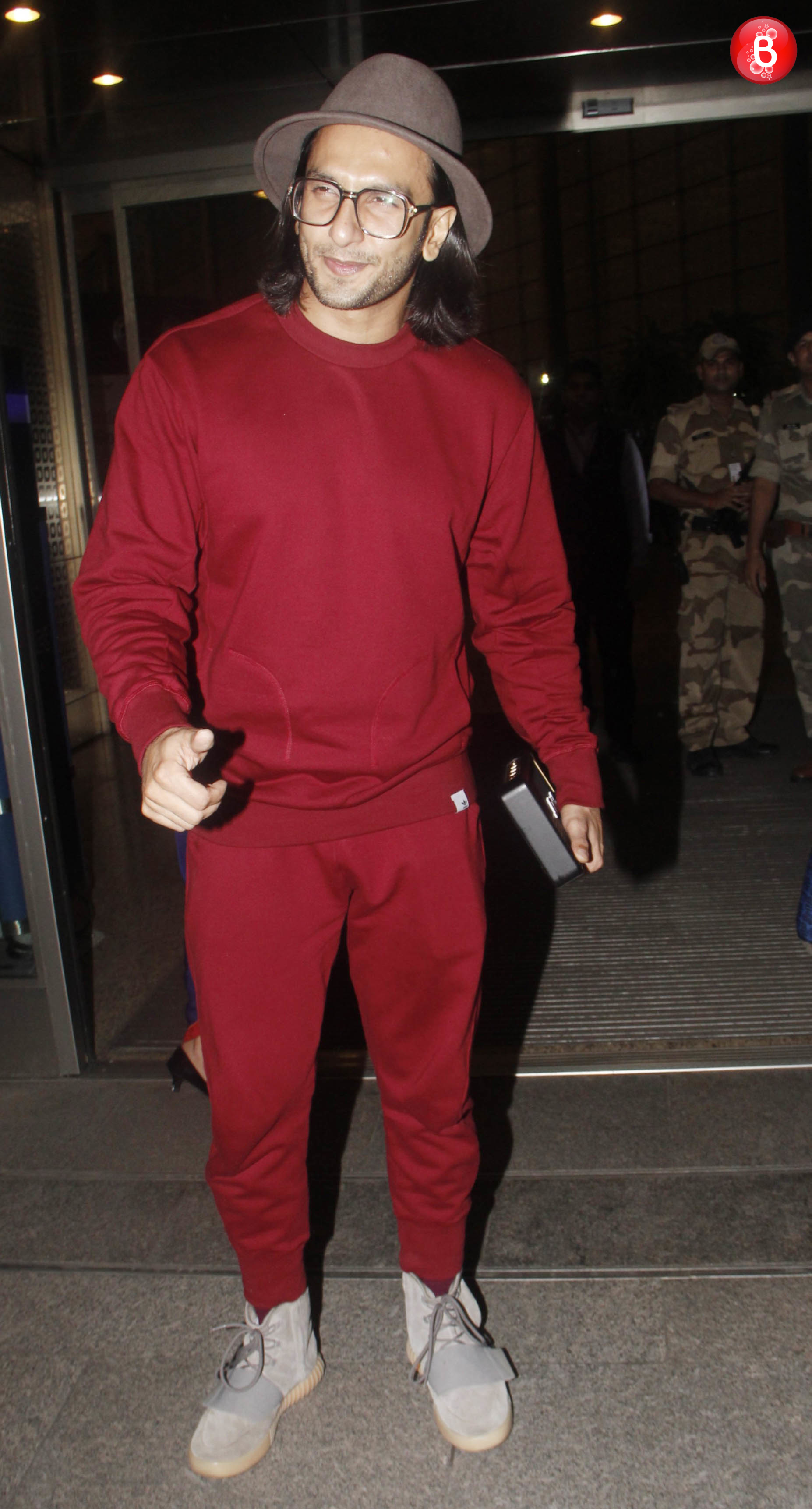 There’s not much we can do about Ranveer’s hotness, honestly. No matter how hard we try to find a dampening factor, we fall flat on our faces. The actor looks super handsome in this bright coloured red cosy tracksuit. Comfy faded grey shoes, a stylish hat and nerdy glasses... and voila! The macho dish is ready.