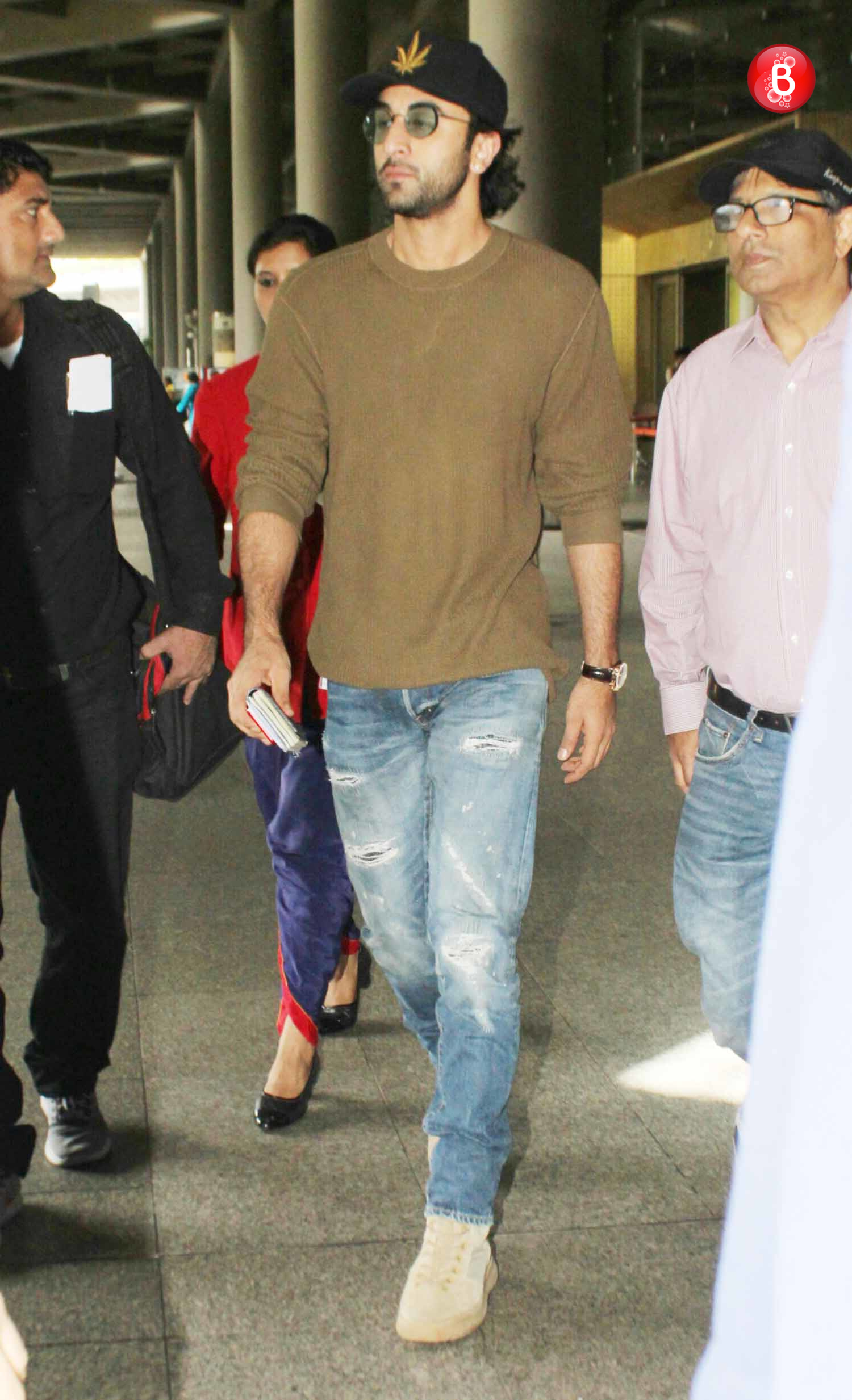 Mr. Kapoor doesn't really have to try too hard to look stylish. Although he stuck to a basic look of a jaded green tee, frayed denims, beige sneakers, black cap and round shades, he cut out quite a casual yet stylish airport look recently. Why so hot, Ranbir Kapoor?